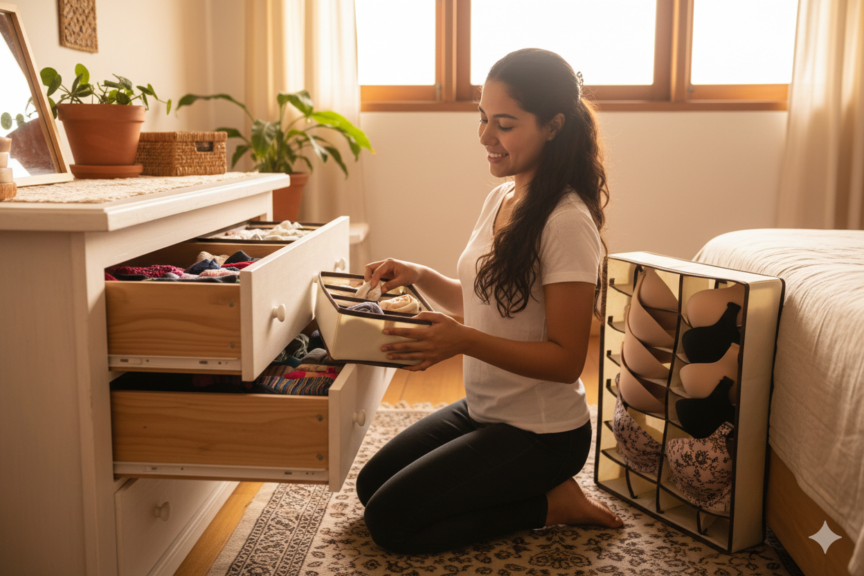 Me encantó, son 4 organizadores, en uno coloque los brasieres, en otro las medias, en otro la ropa interior y en otro los short.